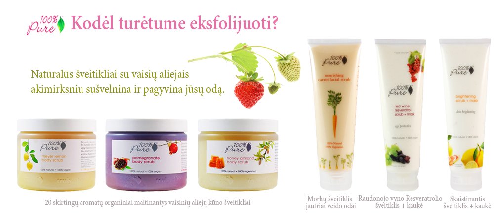 100% Pure natūralūs kūno šveitikliai: www.100pure.lt/20-kuno-sveitikliai